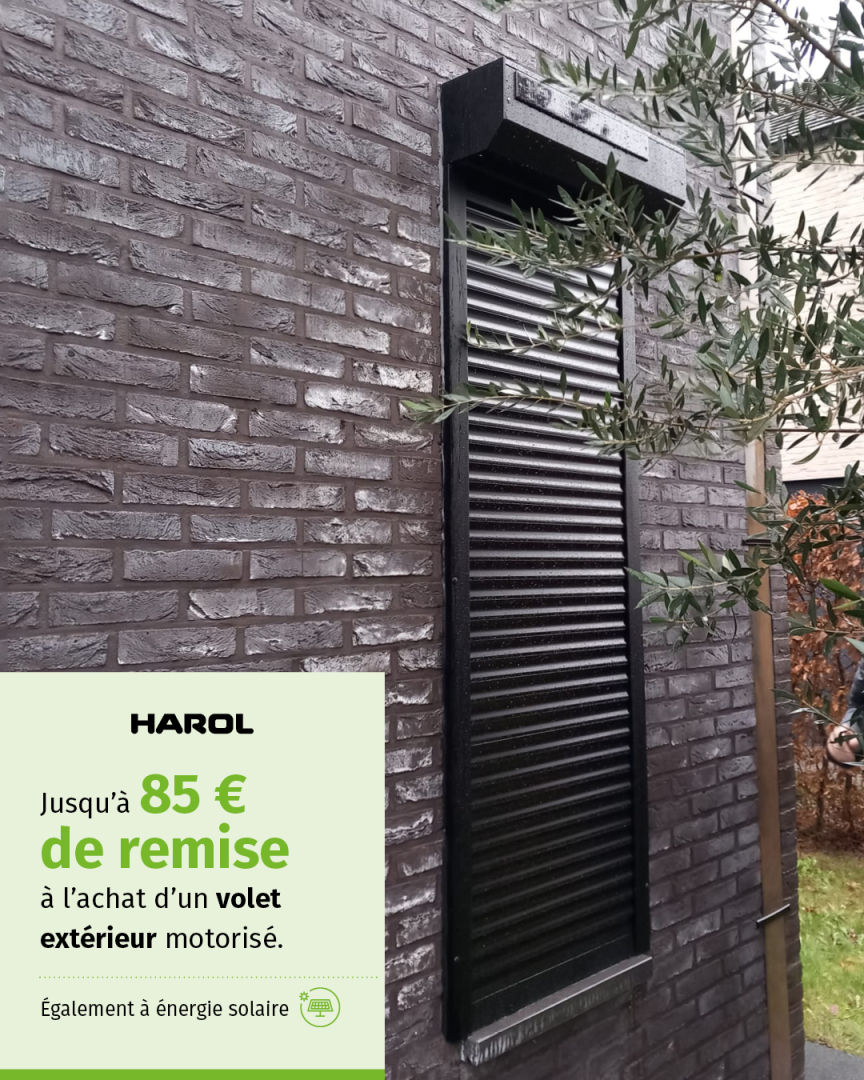✅ Jusqu’à 85 € de remise sur les volets extérieurs motorisés (également à énergie solaire).
